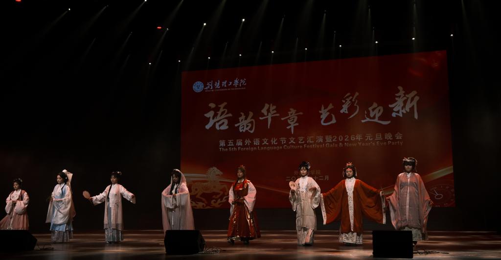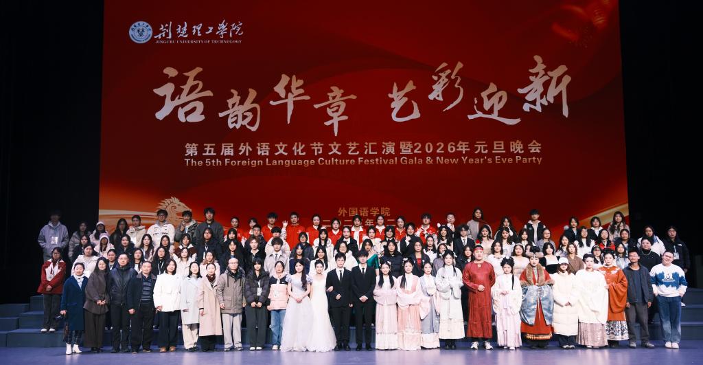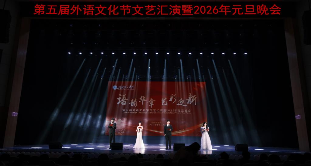 语通中外传雅韵,艺绘新元启华章。12月28日晚,qy球友会第五届外语文化节文艺汇演暨2026年元旦晚会在荆楚理工会堂举行。学工处领导,qy球友会全体领导班子及学院800余名师生欢聚一堂,共赏中外文化互鉴交融的青春风采,喜迎新年。