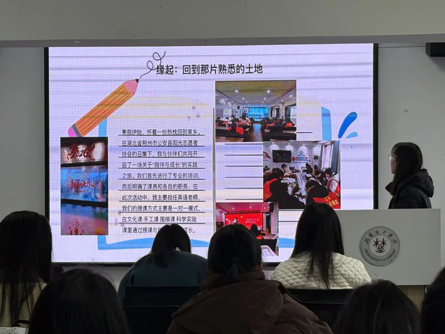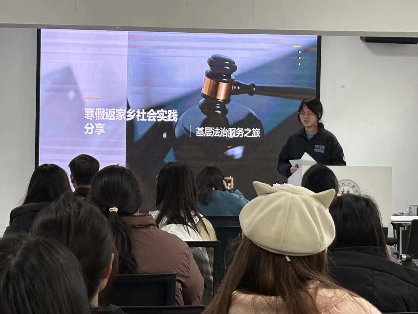 会上,来自学院24级和25级的4名优秀学生代表依次登台,通过精心制作的PPT、生动的视频和饱含深情的讲述,分享了他们在寒假期间深入基层、服务家乡的精彩故事和深刻感悟。他们的实践内容丰富多彩,涵盖了多个领域: